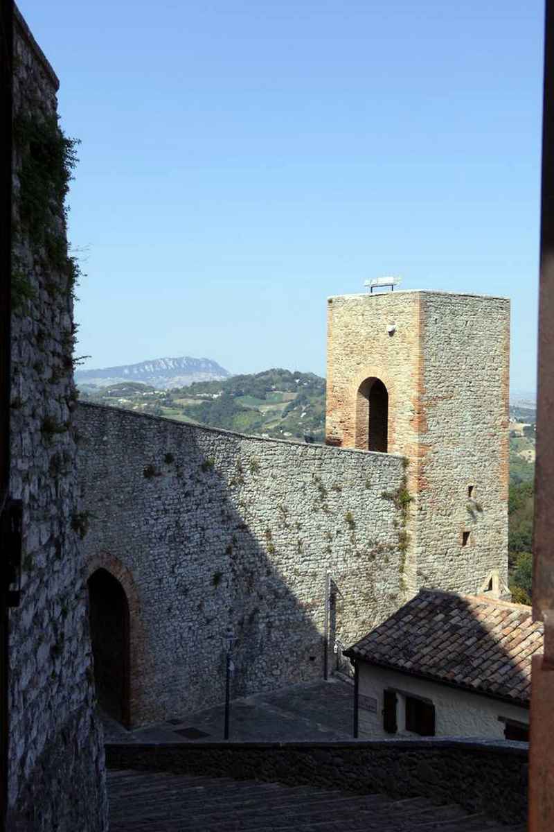 Montefiore Conca, a charming medieval village in the province of Rimini, Italy, is dominated by its imposing Rocca, a magnificent 13th-century fortress that stands proudly atop the hill. This well-preserved castle is the main attraction, offering breathtaking panoramic views of the surrounding Romagna countryside and the Adriatic Sea. The village itself retains much of its ancient structure, with narrow, winding streets, stone houses, and historic walls that invite exploration. Key events often revolve around the fortress, such as historical reenactments and medieval festivals, bringing the past to life. Nearby attractions include the scenic Valconca region, ideal for nature lovers, and the vibrant coastal resorts of the Riviera Romagnola like Cattolica and Rimini, easily accessible for day trips.