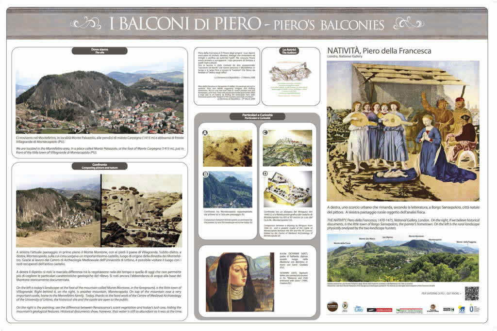 The panoramas depicted in the works of Giotto, Leonardo da Vinci and Piero della Francesca, can now be seen live. Thanks to the work of Rosetta Borchia, painter and landscape photographer, and Olivia Nesci, professor of Geomorphology at the University of Urbino, it was possible to locate the exact points where Renaissance artists laid their easels to create their masterpieces. This guided tour of the Renaissance balconies is an immersion in the colors and perspectives of the Italian Renaissance.