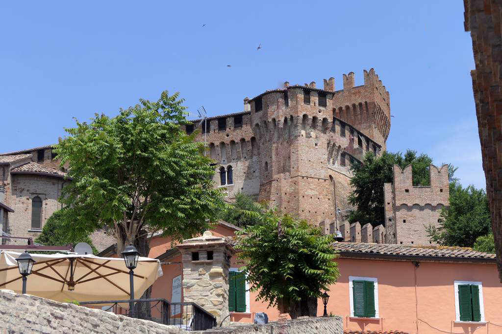 Gradara is a charming medieval village in the Marche region of Italy, renowned for its imposing 14th-century fortress, the Castello di Gradara. This perfectly preserved castle is famous as the setting for the tragic love story of Paolo and Francesca, immortalized by Dante Alighieri in the Divine Comedy. Visitors can explore the castle's well-preserved interiors, climb the tower for panoramic views of the Adriatic coast and the surrounding countryside, and walk along the ancient defensive walls. The village itself retains its historic character with narrow, cobbled streets, artisan shops, and traditional restaurants. Events often include historical reenactments, especially around the anniversary of Paolo and Francesca's story, drawing tourists interested in medieval history and romance. Nearby attractions include the stunning beaches of the Adriatic Riviera and the cultural cities of Pesaro and Urbino.
