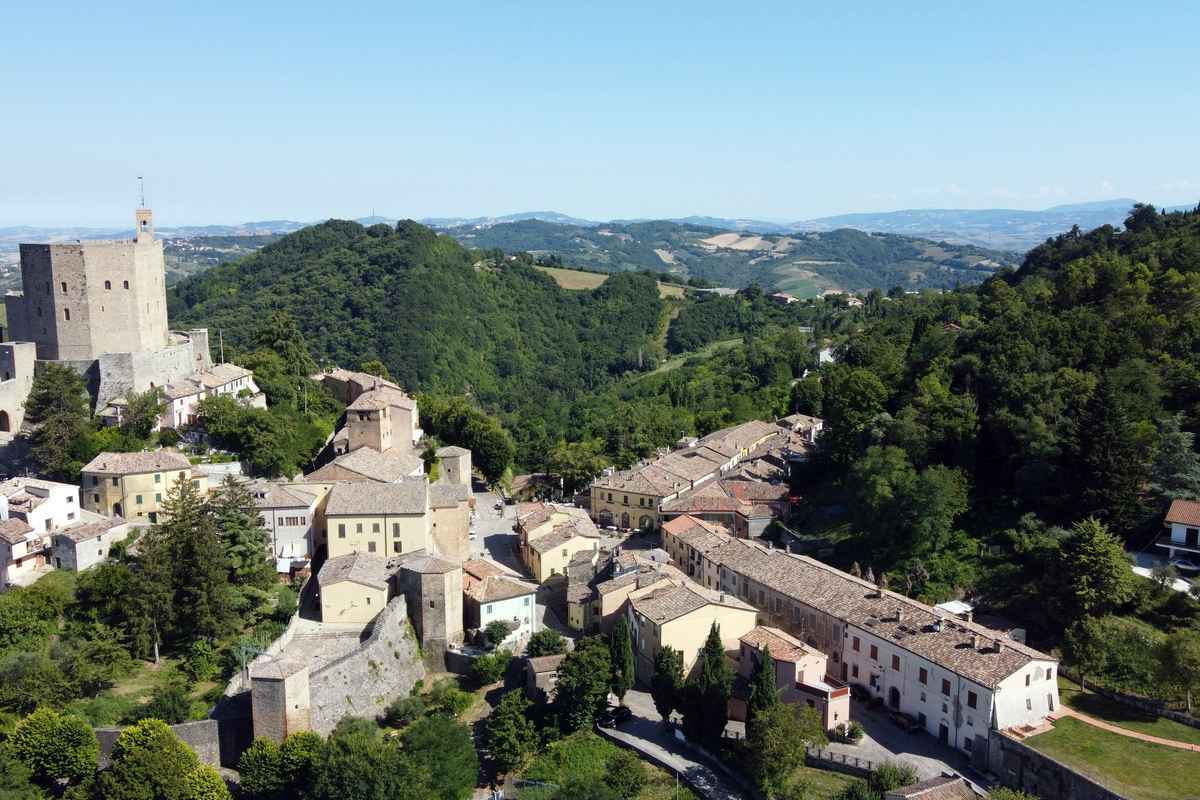 Montefiore Conca, a charming medieval village in the province of Rimini, Italy, is dominated by its imposing Rocca, a magnificent 13th-century fortress that stands proudly atop the hill. This well-preserved castle is the main attraction, offering breathtaking panoramic views of the surrounding Romagna countryside and the Adriatic Sea. The village itself retains much of its ancient structure, with narrow, winding streets, stone houses, and historic walls that invite exploration. Key events often revolve around the fortress, such as historical reenactments and medieval festivals, bringing the past to life. Nearby attractions include the scenic Valconca region, ideal for nature lovers, and the vibrant coastal resorts of the Riviera Romagnola like Cattolica and Rimini, easily accessible for day trips.